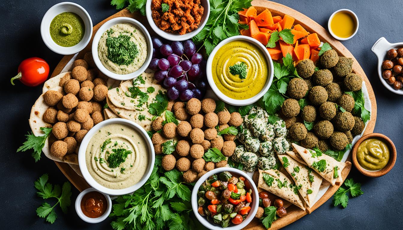 Stuffed grape leaves are another great option. They’re filled with rice and veggies, wrapped in tender leaves. These dishes show the variety of vegetarian food in the Middle East.